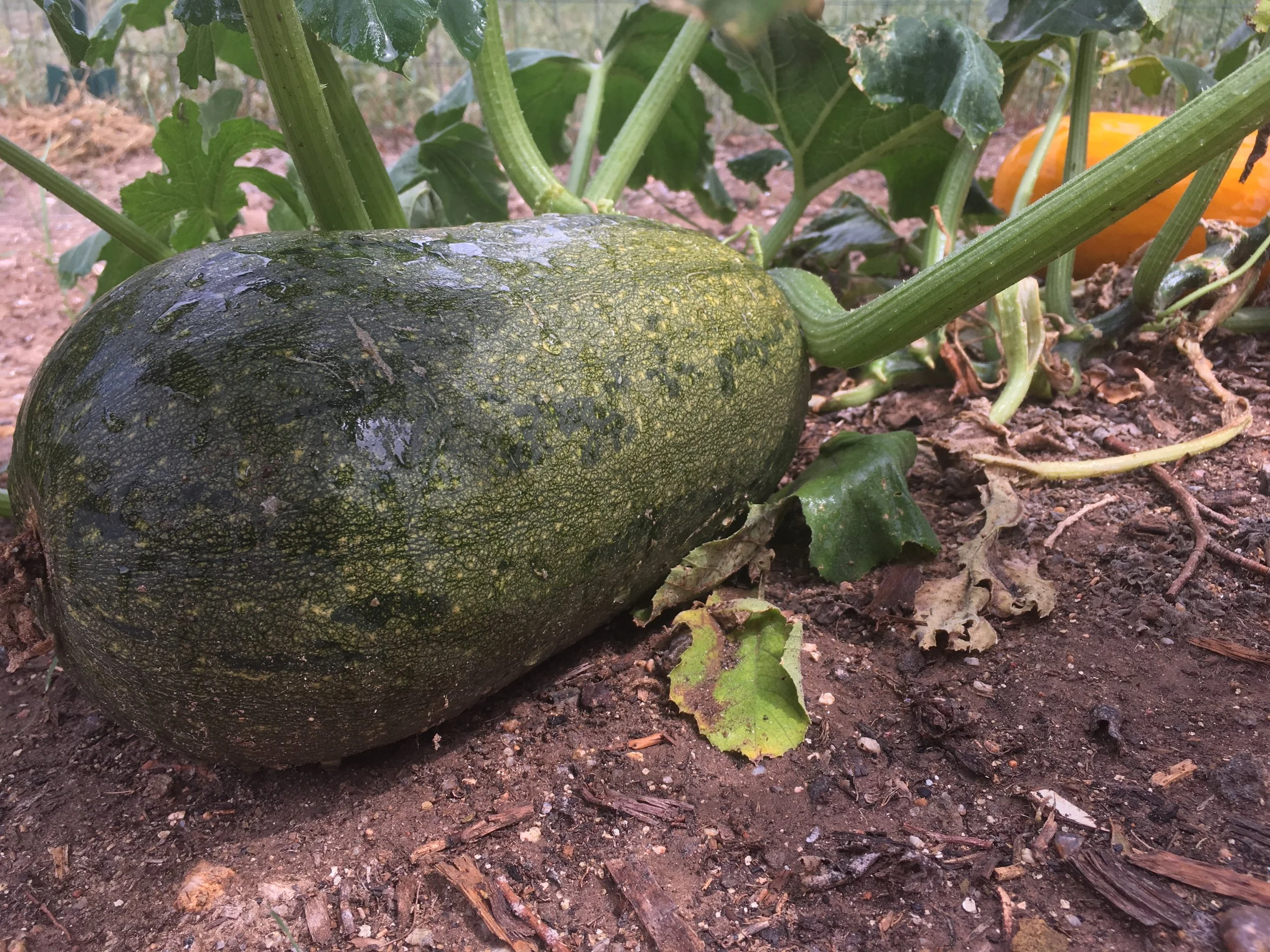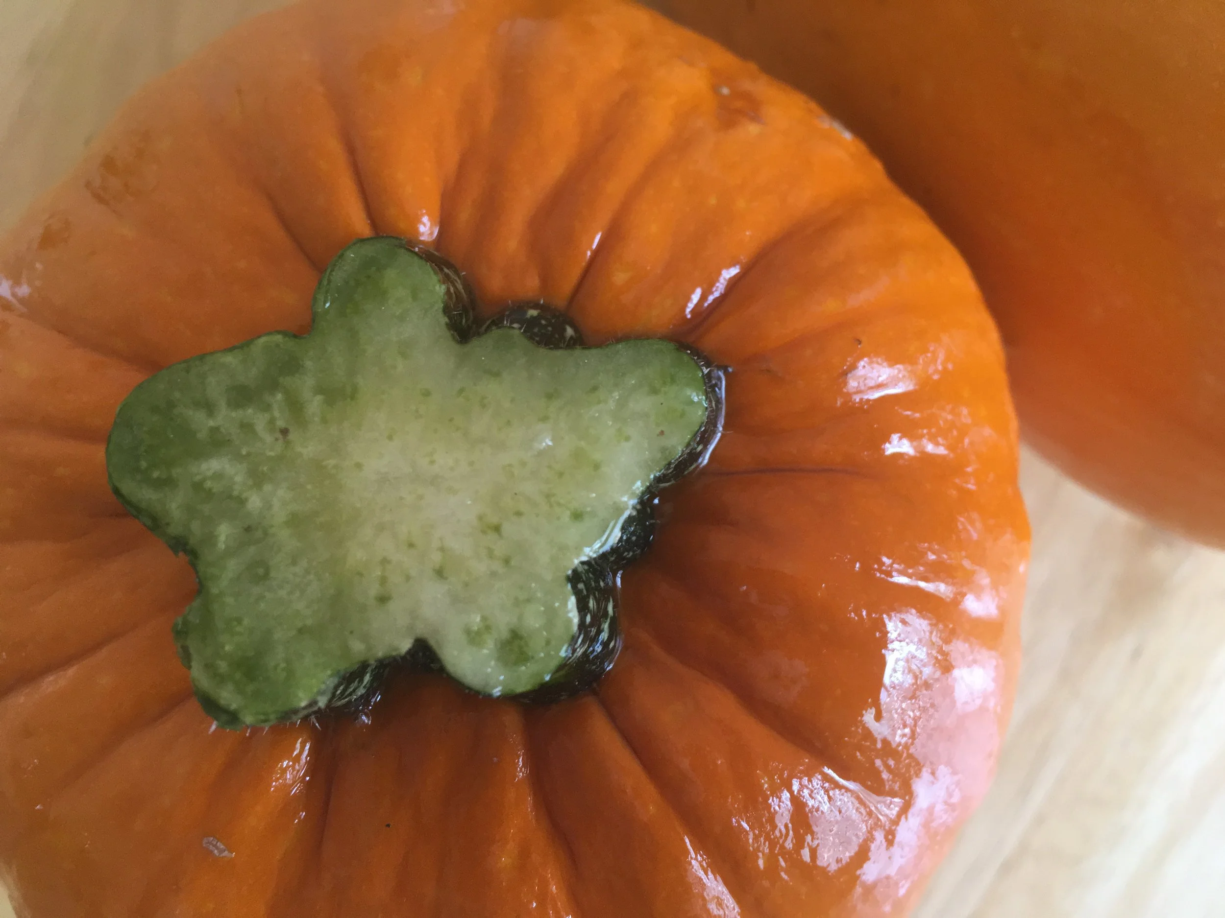 Yesterday’s peppers were easy to pinch off with my bare fingers. The first pair of pumpkins, in contrast—which, small as they are, appear to have stopped growing and goldening, with their younger sibling now surpassing them by far—are firmly knotted to their mother plants by thick, woody stems. Time to bring out the big blade.